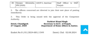 Punjab news point : 14 SSP सहित 28 अधिकारियों के हुए तबादले। जालंधर देहात के पंजाब सरकार ने पुलिस विभाग में बड़ा फेरबदल किया है। 24 IPS अधिकारियों और 4 PPS अधिकारियों के तबादले किए हैं। आदेश में तरनतारन, मोगा, मानसा, मोहाली, खन्ना, मुक्तसर, बठिंडा, पटियाला, जालंधर रूरल, अमृतसर रूरल, मलेरकोटला, पठानकोट और फाजिल्का के SSP को बदल दिया गया है।