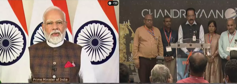 चंद्रमा पर भारत के कदम रखते ही पूरे देश में खुशी का माहौल है। इसरो के कमांड सेंटर में भी वैज्ञानिक झूम उठे।प्रधानमंत्री नरेंद्र मोदी ने जोहान्सबर्ग से वर्चुअली जुड़कर चंद्रयान-3 की लैंडिंग देखी। पीएम मोदी ने कहा कि भारत अब चंद्रमा पर है। उन्होंने कहा कि हमने धरती पर संकल्प किया और चांद पर उसे साकार किया।